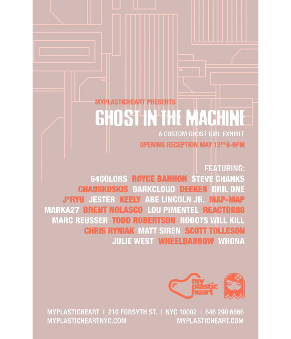 This Friday, May 13 marks the opening for the incredible Ghost Girl custom show, Ghost In The Machine at myplasticheart in NYC. Creator of the Ghost Girl, Matt Siren has hand selected 25 top-notched artists and designers from around the world with a broad range of styles and disciplines. Featured customizers include: 64 Colors, Royce Bannon, Steve Chanks, Chauskoskis, Darkcloud, Deeker, Dril One, J★RYU, Jester, Keely, Abe Lincoln Jr., Map-Map, Marka27, Brent Nolasco, Lou Pimentol, Reactor88, Marc Reusser, Todd Robertson, Robots Will Kill, Chris Ryniak, Matt Siren, Scott Tolleson, Julie West, Ryan the wheelbarrow and Wrona. If you are in the New York area, be sure to go see this show in person. Ghost In The Machine opens this Friday from 6-9pm and will be on display through June 12.