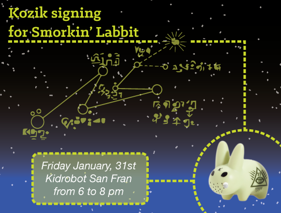 To kick off the first release of the year, Kidrobot San Francisco welcomes you to the signing of the Lore of the Labbit mini series and Blister Packs. This is your chance to meet Frank Kozik himself and get your new toys signed! Come by Friday January 31st, the fun starts at 6pm.