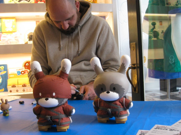 Dunny fever was running rampant last night at Kidrobot San Francisco for the pre-release signing of the new Raku Dunny Red Edition by Huck Gee. Fans lined up for hours in anticipation for this new Gold Life inspired set.